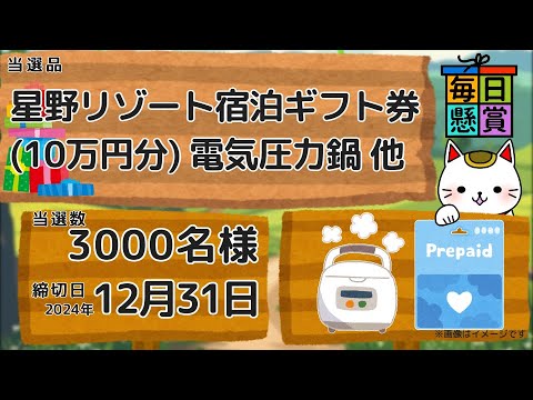 当選品 | 星野リゾート宿泊ギフト券(10万円分) 電気圧力鍋 他 |